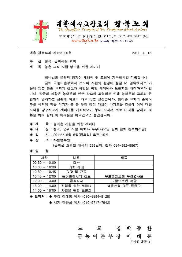 경북노회 <2011 청년연합예배> 참석협조 건