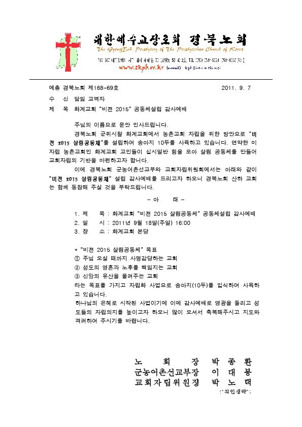 화계교회 “비젼 2015” 공동체설립 감사예배