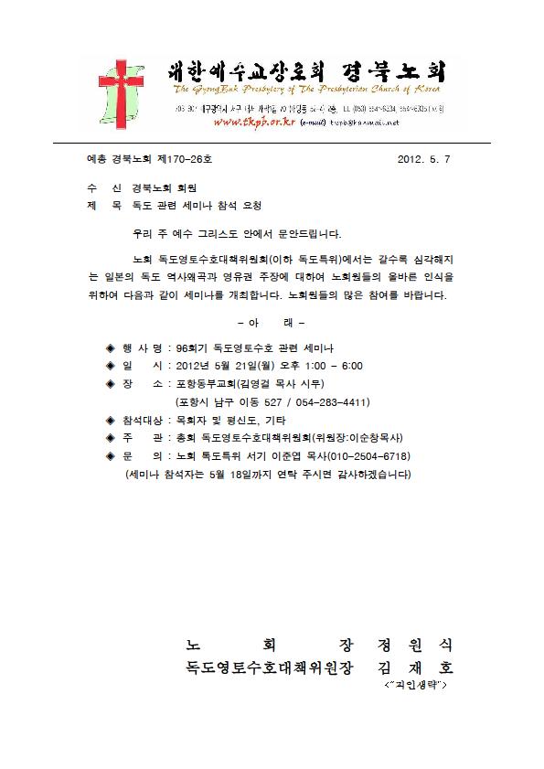 독도 관련 세미나 참석 요청