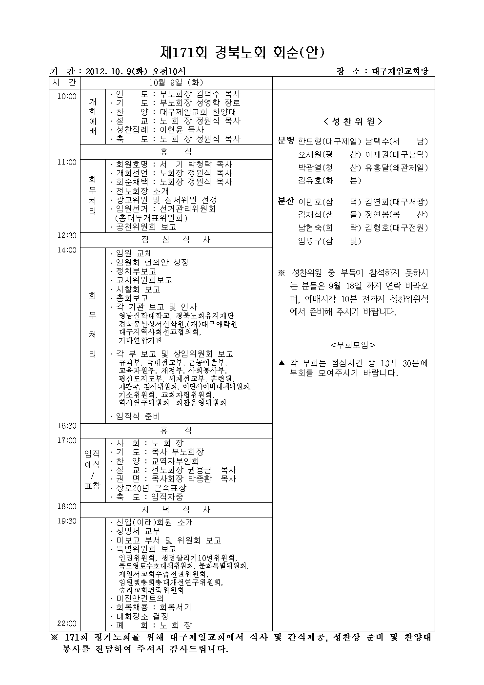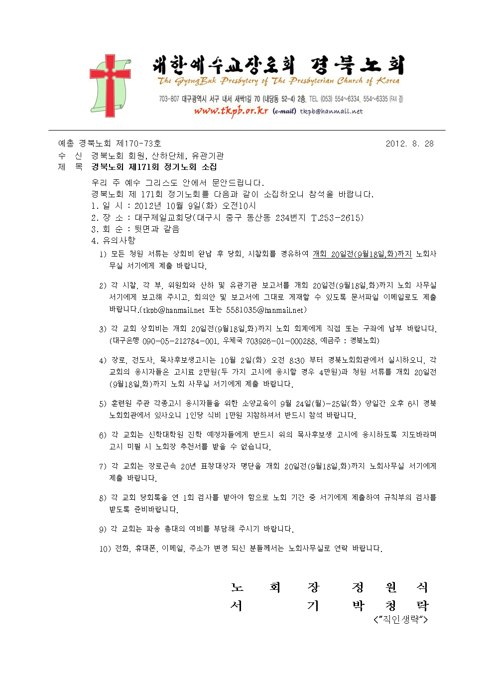 경북노회 제171회 정기노회 소집