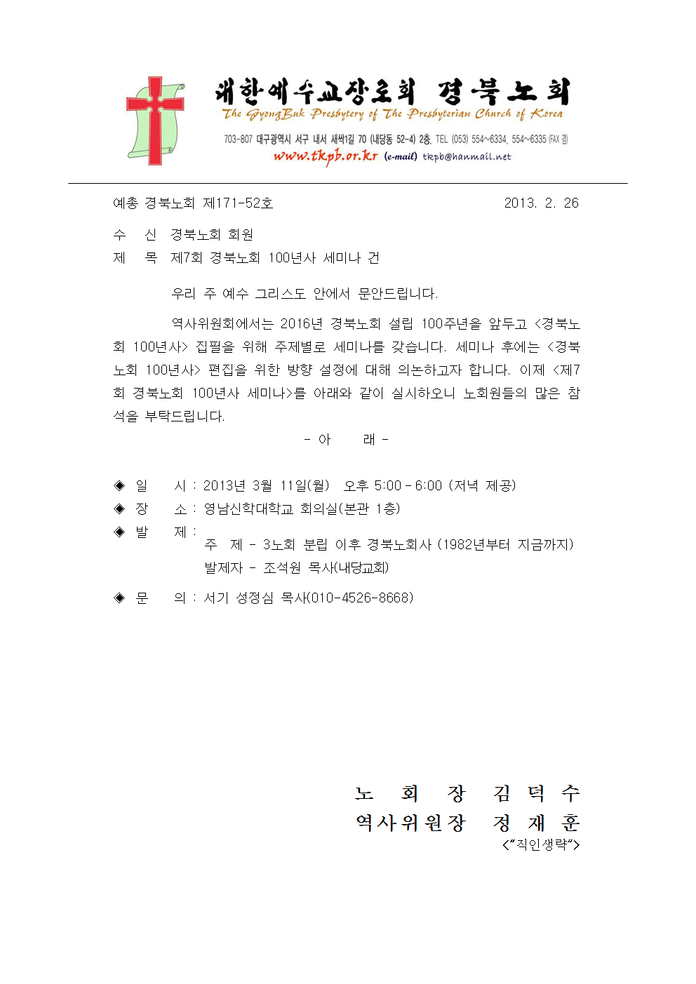 제7회 경북노회 100년사 세미나 건