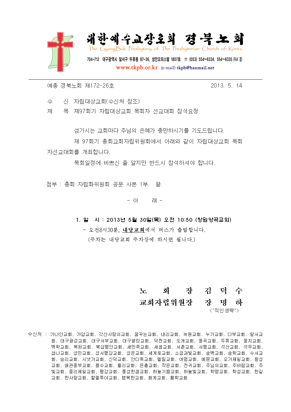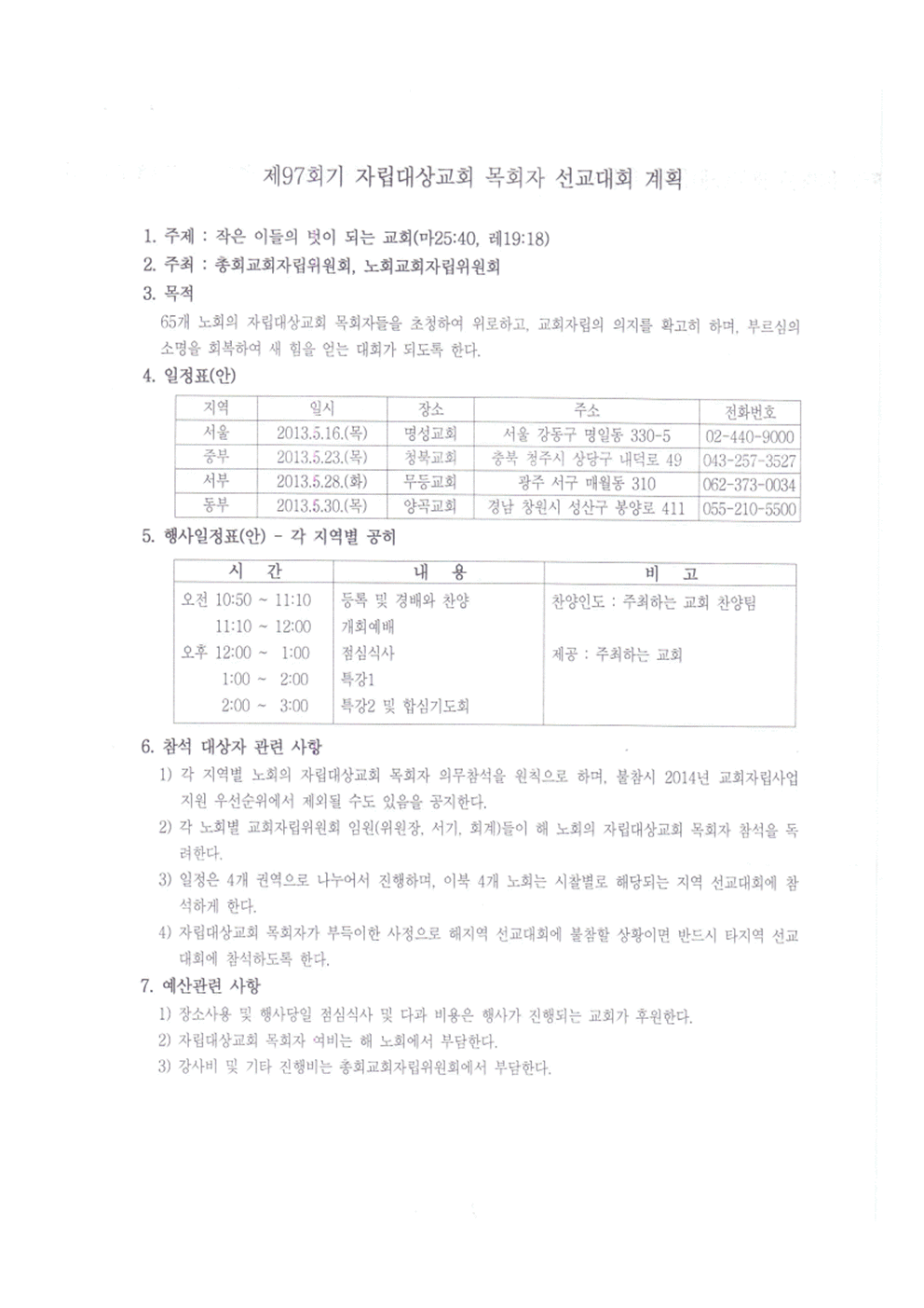제97회기 자립대상교회 목회자 선교대회 참석요청