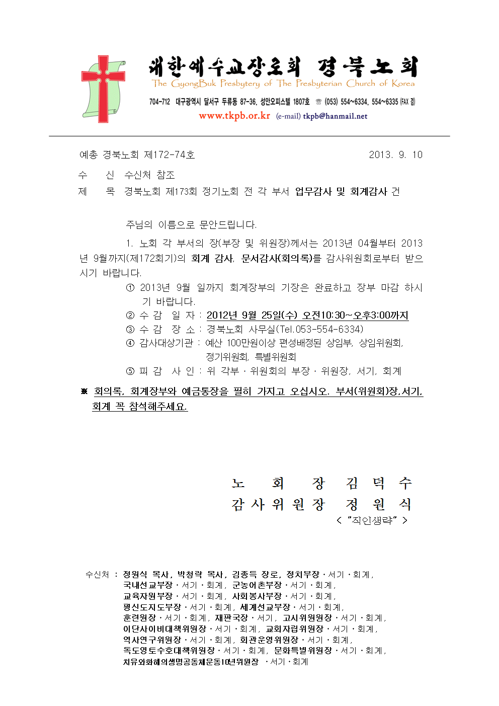 경북노회 사무실 이전 공지