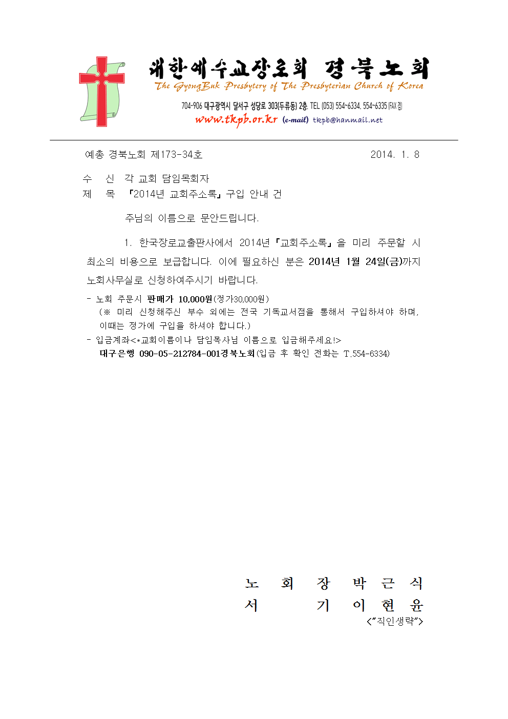 2014년 교회주소록구입 안내 건