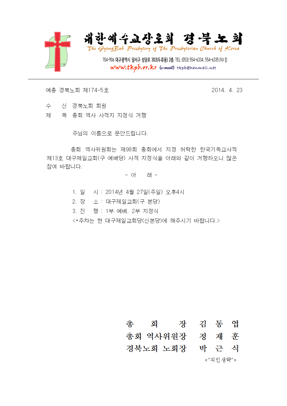 제174회 정기노회 소집