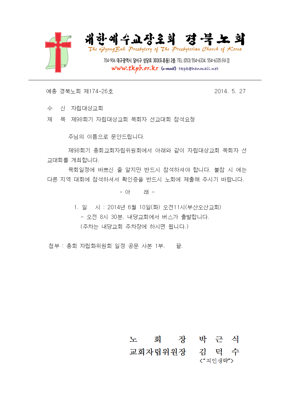 제98회기 자립대상교회 목회자 선교대회 참석요청