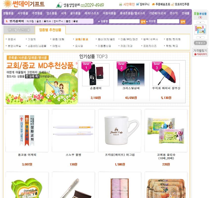 저희는 sundaygift (주일선물) 이라는 전도용품 및 판촉.인쇄물 전문 쇼핑몰을